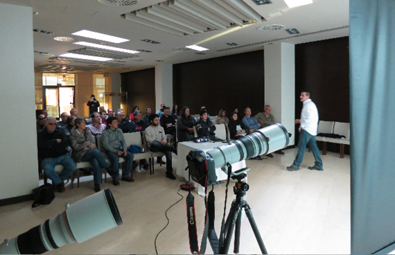 El pasado 13 de marzo tuvo lugar el evento Canon y Fotocentro en el NH Gijón. El evento concentró una gran cantidad de gente y, antes de la apertura de puertas, ya había una quincena de personas eperando para empezar. Dado el buen tiempo, decidimos realizar la prueba de material en la terraza del hotel con una vistas privilegiadas de la playa de San Lorenzo. A las 18:30 bajamos al salón de actos y los asistentes pudieron asistir a dos charlas fotográficas, una relacioanada con los Sistemas EOS para comprender mejor el funcionamiento de las principales funciones dentro de la tecnología EOS y así aprender a mejorar el rendimiento de su cámara y conocer las novedades de los últimos y mas sofisticados cuerpos de la marca. Tras una pausa de 5 minutos, comenzó la segunda charla, en donde tratamos diferentes técnicas de fotografía de naturaleza, es decir, cómo nos lo montamos los fotógrafos de naturaleza para conseguir ciertas imagenes.