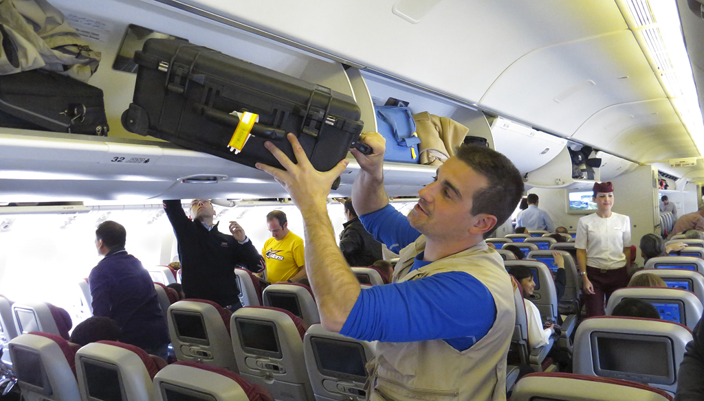 Uno de los principales problemas que tenemos los fotógrafos a la hora de viajar con nuestro equipo, en algunas compañías aereas , es la necesidad de contar con un medio de transporte que esté admitido en cabina, es decir, que tenga las medidas adecuadas aceptadas por la IATA, estándar unificado por las compañías. La maleta cumple esas normas sin problemas, con el añadido de contar con ruedas y un asa extraíble retráctil para poder transportarla por los aeropuertos sin esfuerzos. Podemos estar tranquilos que nos montamos en el avión con la confianza de que entrará sin problemas en la cabina de equipajes.